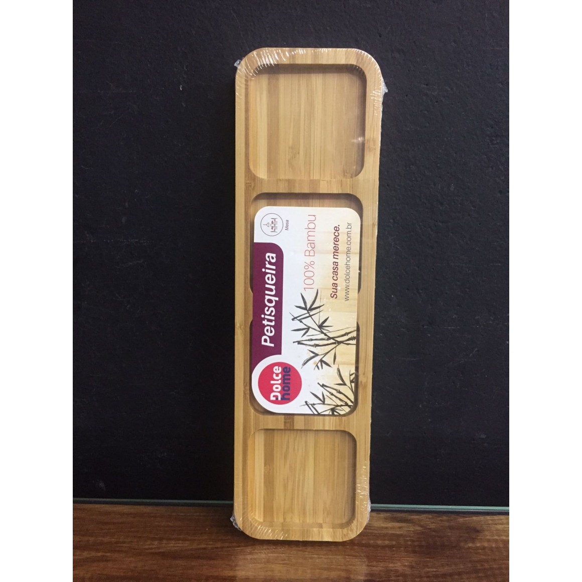 - Produto: PETISQUEIRA RETANGULAR 4 ESPAÇOS BAMBU 33x10cm