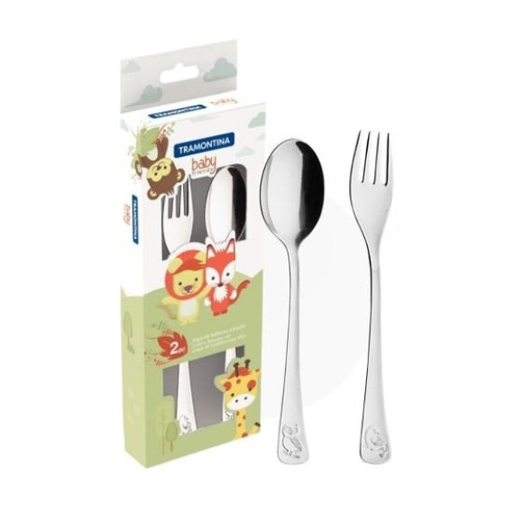 Para incentivar a autonomia das crianças e tornar o momento da refeição mais divertido o Jogo de Talheres Infantil Tramontina em Aço Inox Acabamento Brilho com Desenho em Alto Relevo 2 Peças da linha infantil Baby Friends é a melhor opção. Com gravações em alto relevo, cada uma diferente da outra. A escolha perfeita para papais e mamães que buscam por produtos práticos e de qualidade para os pequenos. Benefício: O jogo é produzido totalmente em aço inox, portanto, as peças não soltam nenhum resíduo nos alimentos, mantendo-os saudáveis, além de serem altamente resistentes. Os talheres contam com formato ergonômico, permitindo que a a criança utilize com mais facilidade o talher. Elas também podem ser lavadas diariamente na máquina de lavar. Idade mínima recomedada pelo fabricante: +12 meses; Dimensões aproximadas do garfo (AxLxC): 1,5cmx2,2cmx15,5cm; Dimensões aproximadas da colher (AxLxC): 1,5cmx3,4cmx15,6cm; Cor: Prata; Composição/Material: Aço Inoxidável; Fabricante: Tramontina. - Produto novo e em estoque; - As cores do tecido ou produto podem varias de acordo com o lote de fabricação;