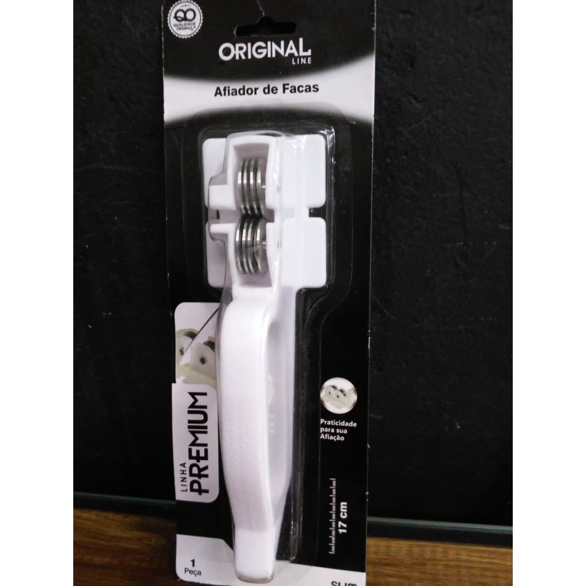 Afiador De Facas Amolador Aço Slim Premium Original LineO afiador de facas da Original Line, possui excelente desempenho de afiação em razão do risco de afiação de alta capacidade. Recupera o fio com rapidez e precisão.