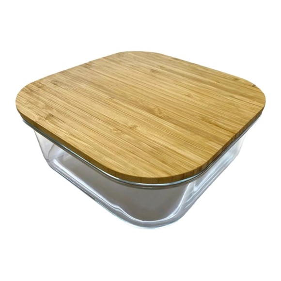 Mantenha sua despensa organizada com o Pote Hermético Quadrado de Vidro com Tampa de Bambu 500ml.
