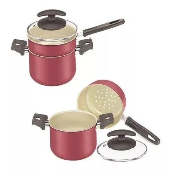 CUSCUZEIRO EM ALUMINIO REVESTIDO DE ANTI ADERENTE COM TAMPA DE VIDRO