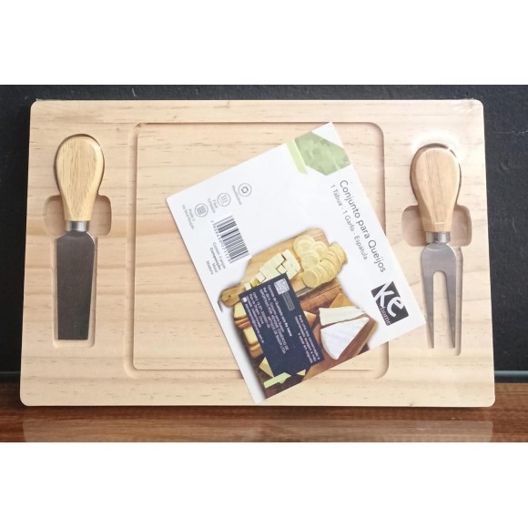 CJ TABUA DE QUEIJOS 29X19CM C/ 1 GARFO E 1 ESPATULA – KEHOME