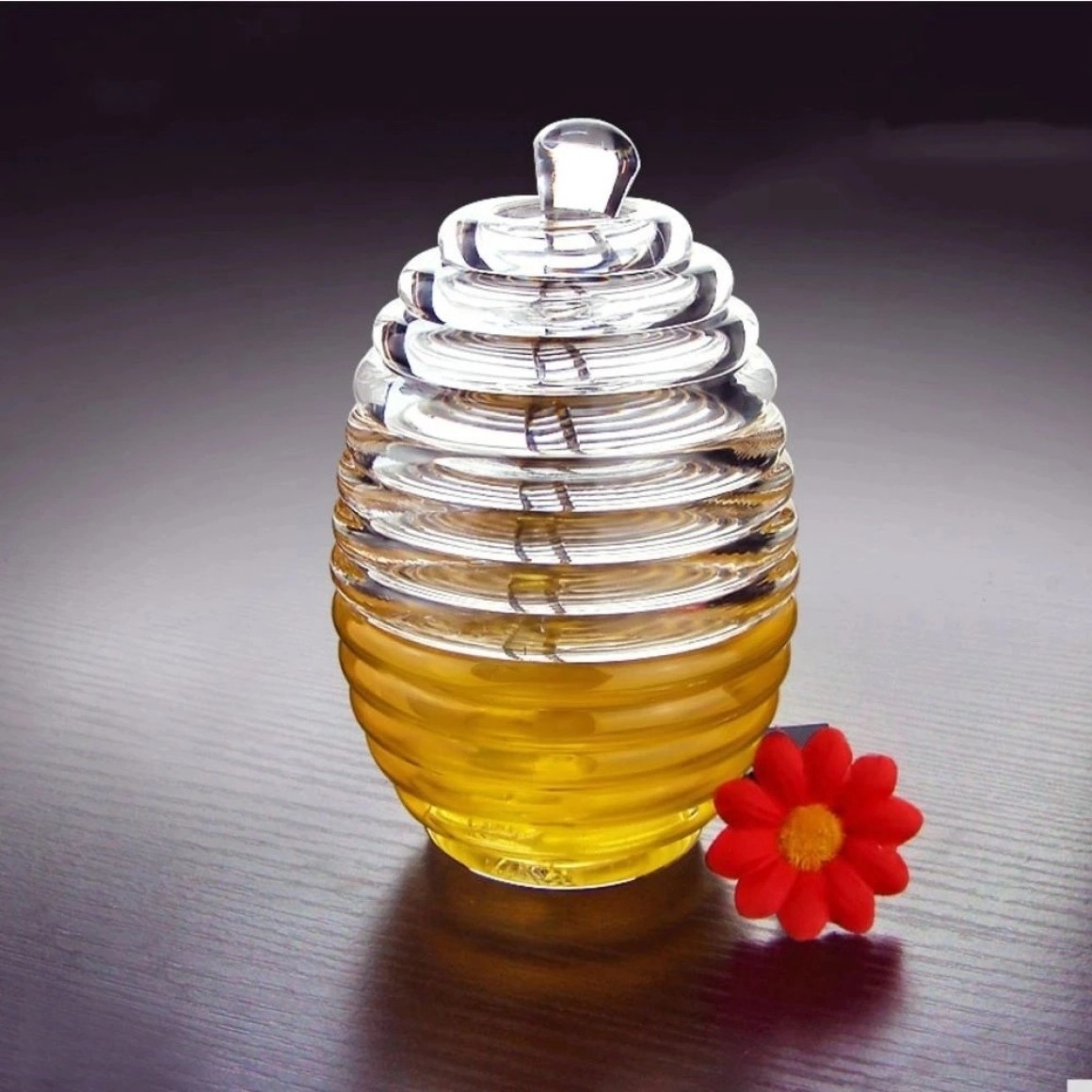 Porta Mel em acrílico transparente, modelo clássico e muito bonito.
