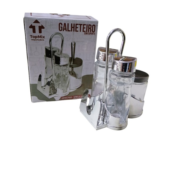 Galheteiro em Vidro e Metal com Suporte 3 Peças com suporte para guardanapo Top Mix
