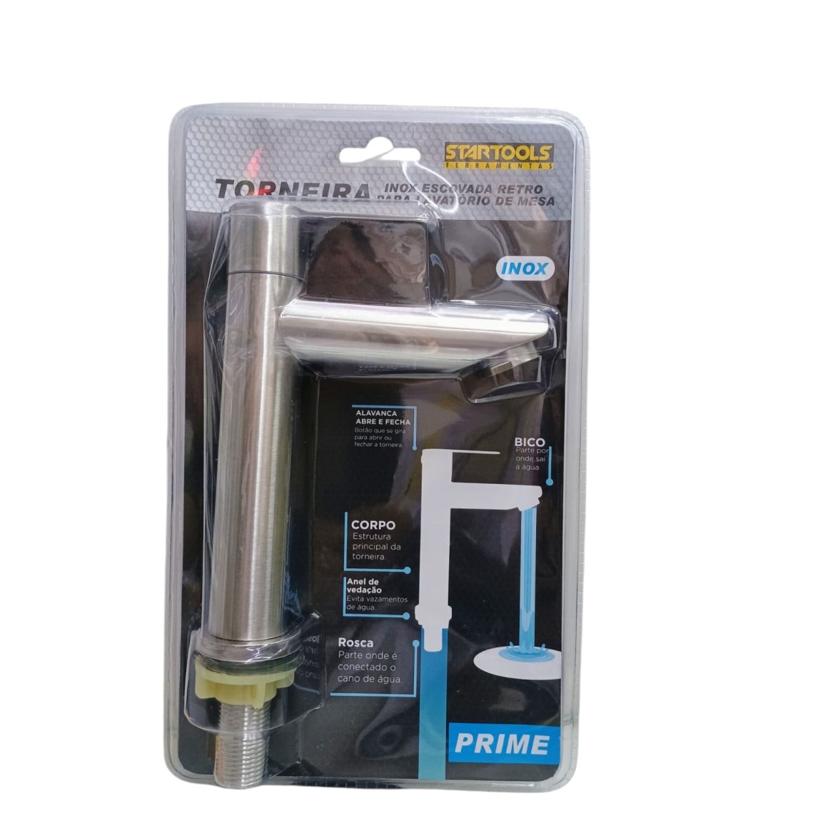 TORNEIRA INOX ESCOVADA RETRO p/ lavatório mesa