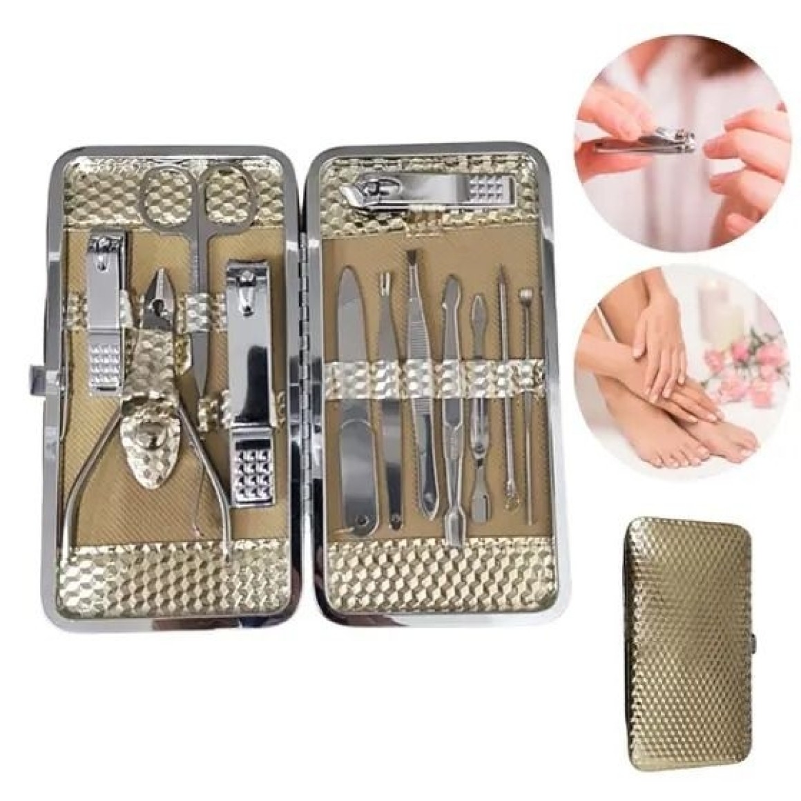 Conjunto Estojo Kit Manicure Pedicure Portátil 12pçs Profissional Domicílio Unha Encravada Inoxidável Autoclave Estelizável
