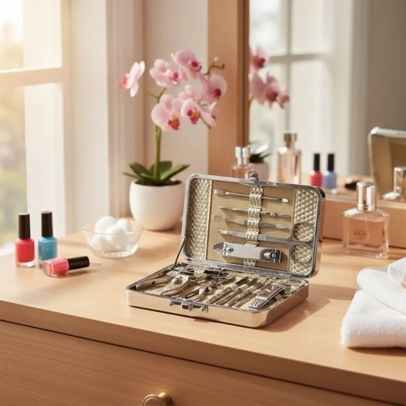 Kit Manicure e Pedicure Profissional Completo – Estojo Inox Luxo